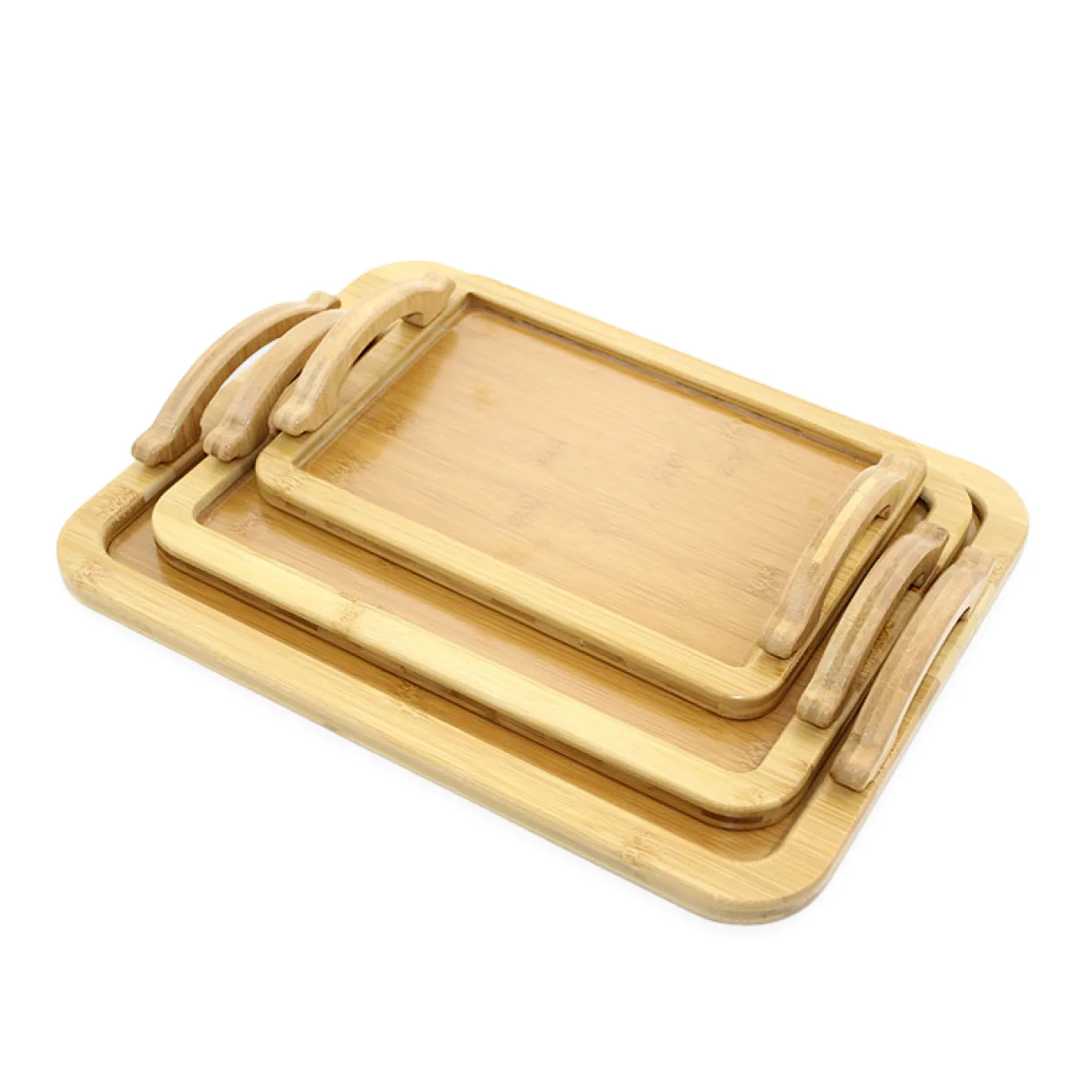 3'lü Saplı Bambu Servis Tepsisi | Çok Amaçlı Doğal Ahşap Mutfak & Sunum Tabağı