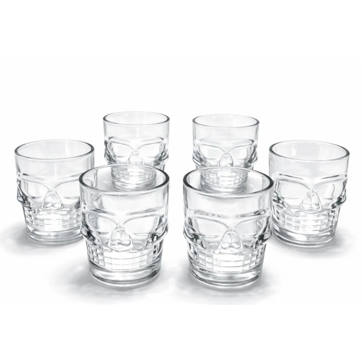 6 Adet Kurukafa Tasarımlı Cam Shot Bardağı | Parti ve Özel Anlar İçin Şık Sunum