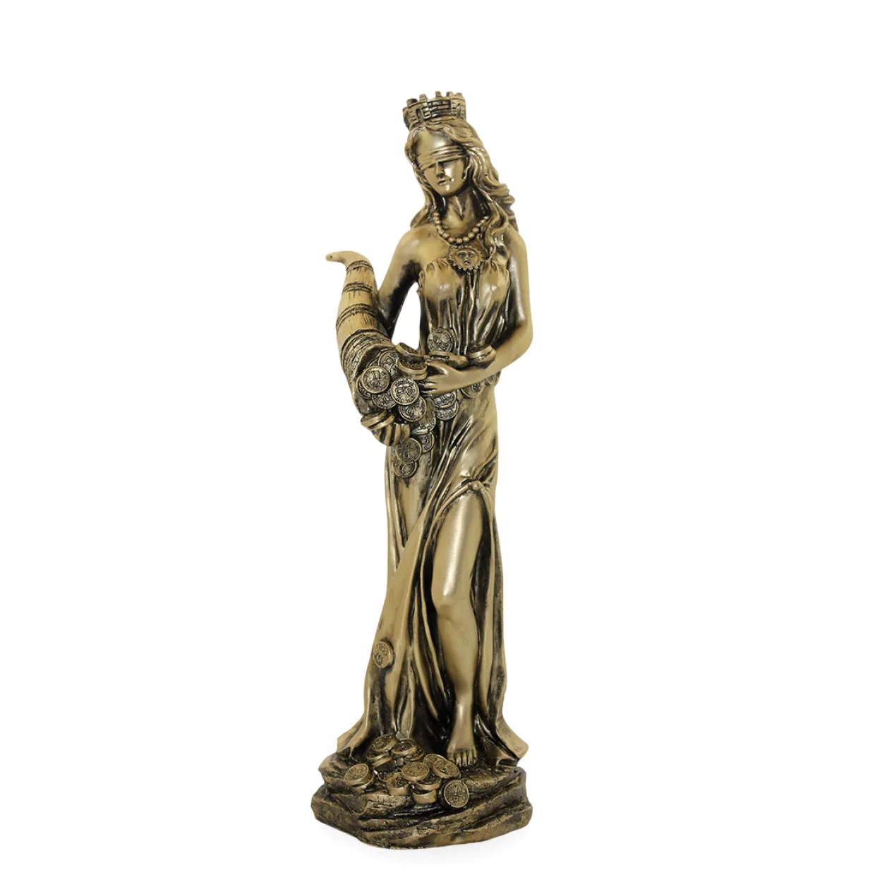 Bu özel üretim, 1. Derece Kaliteli Polyesterden özenle imal edilmiştir. Dayanıklı yapısı ve detaylara verilen önem sayesinde uzun yıllar boyunca ilk günkü ihtişamını korur. Figürün üzerinde yer alan madeni paralarla dolu bereket boynuzu (cornucopia) ve Fortuna'nın zarif duruşu, sanat ve ustalığın mükemmel birleşimini sergiler.