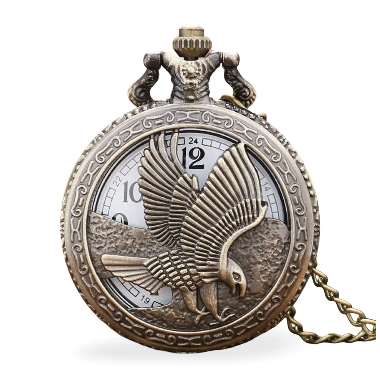 Antik Bronz Kartal Desenli Zincirli Köstekli Cep Saati - Özel Vintage Tarz Hediye