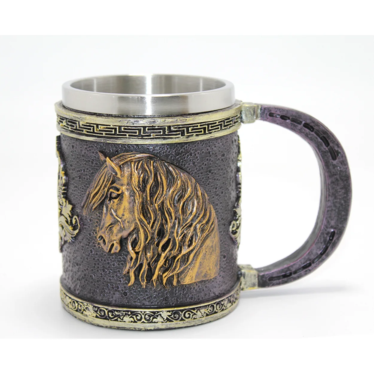 Antik Görünümlü 3D Kabartma At Temalı Paslanmaz Çelik Kupa Bardak | Dekoratif Hediye