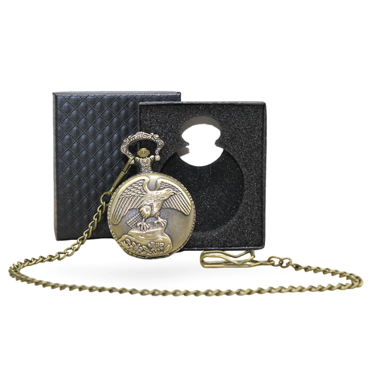 Antik Görünümlü Kartal Desenli Köstekli Cep Saati ve Özel Hediye Kutusu