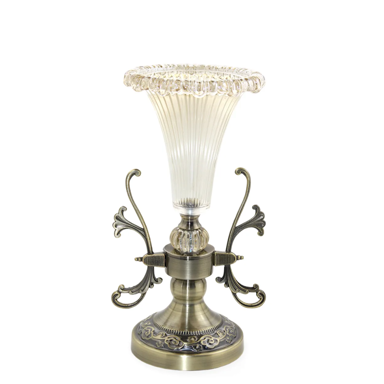 Antik Görünümlü Pirinç Ayaklı Flüt Cam Şamdan Mumluk Tekli Dekoratif Obje 32x16 Cm