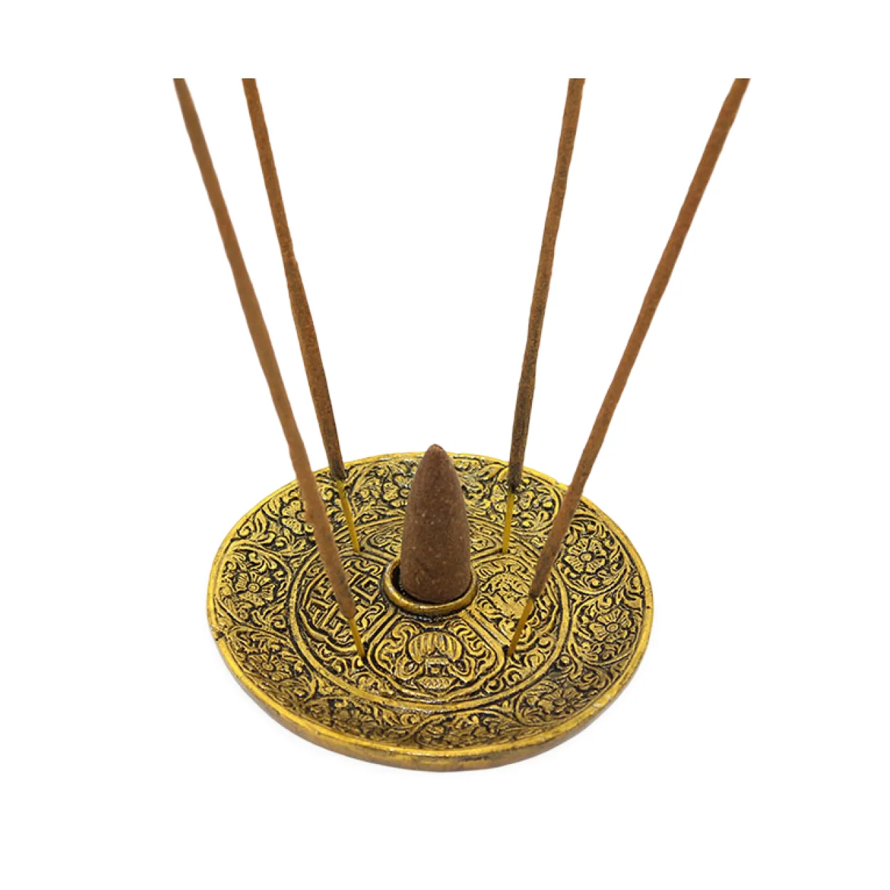 Antik Motifli Yuvarlak Metal Tütsülük & Buhurdanlık – Konik ve Çubuk Tütsü Stantı 9 Cm