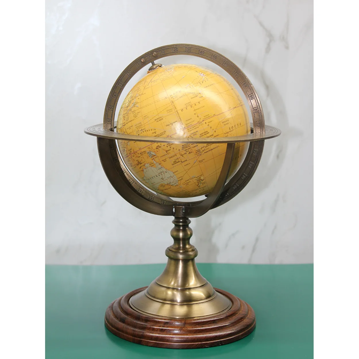 Bu özel Pirinç Dünya Küre, ideal boyutuyla her alana kolayca uyum sağlar: