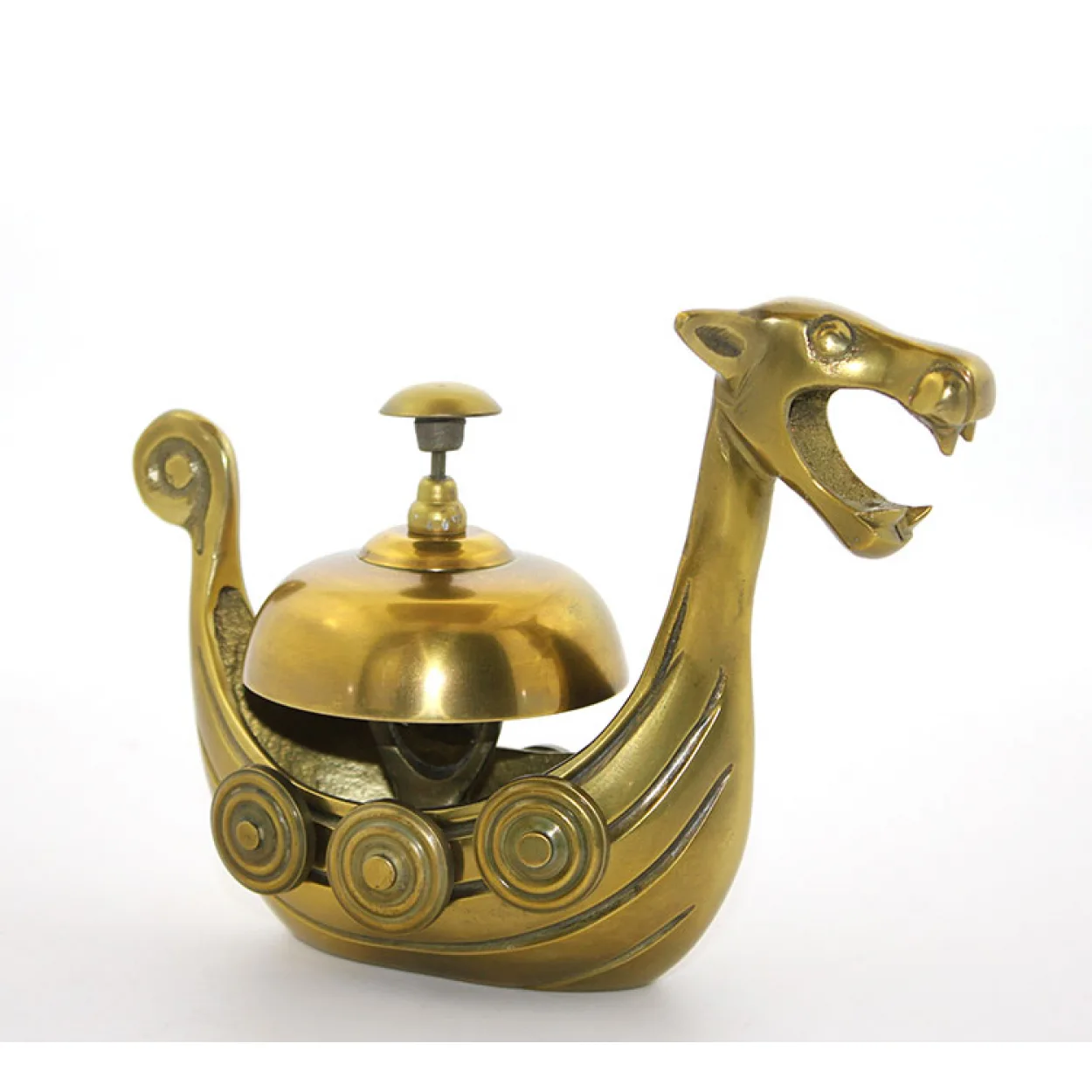 Antika Görünümlü Pirinç Viking Gemisi Temalı Resepsiyon ve Dekoratif Masa Çanı