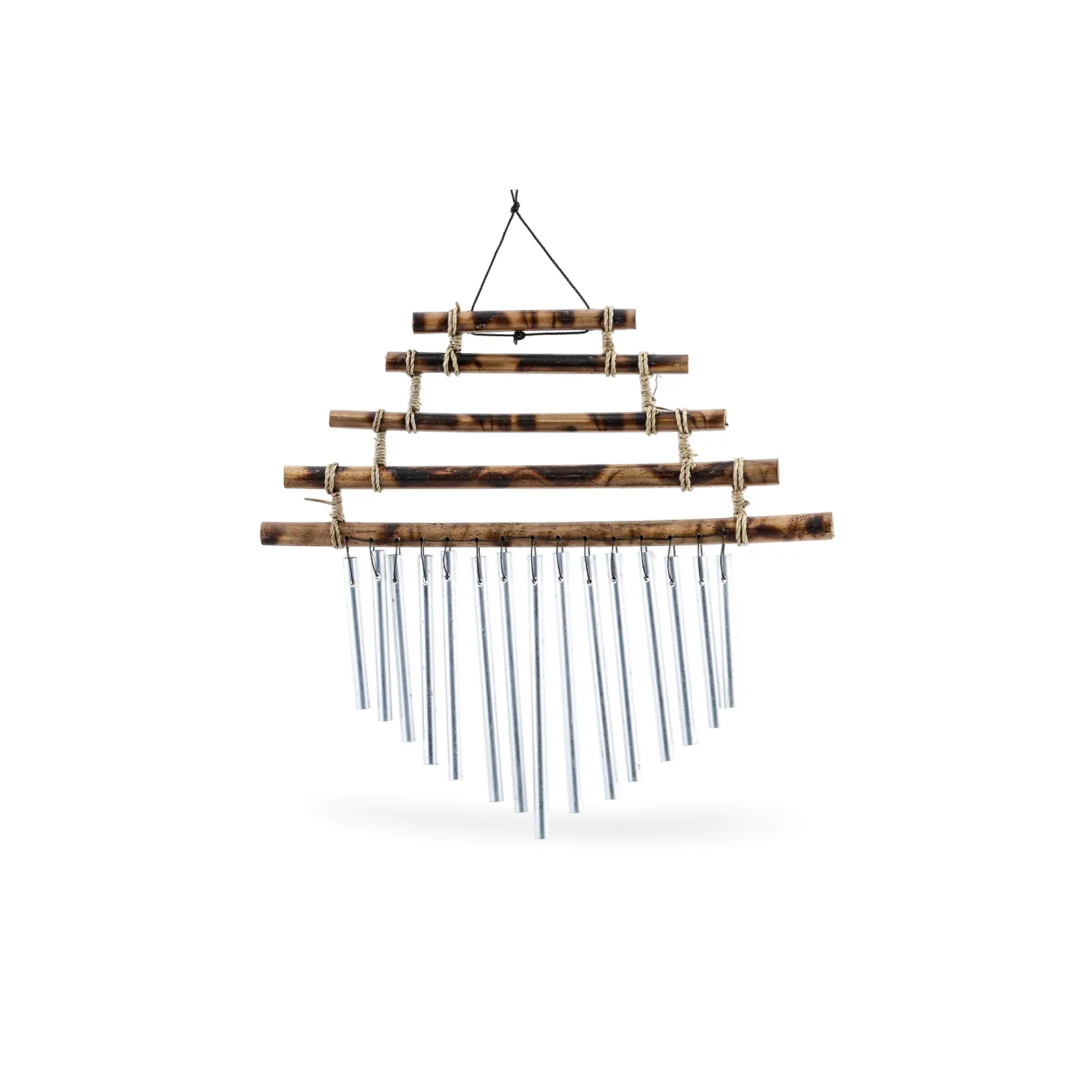 Bambu 5 Katlı Metal Borulu Rüzgar Çanı | El Yapımı Dekoratif Bahçe ve Balkon Zili