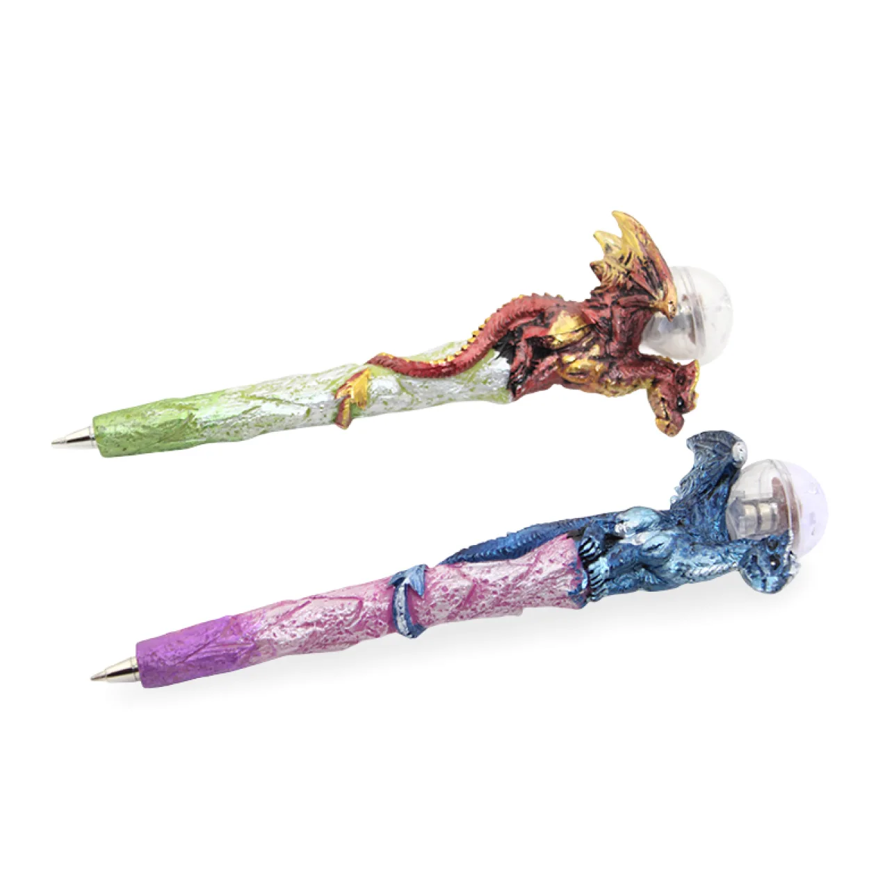 Büyüleyici Ejderha Temalı Işıklı Tükenmez Kalem - Polyester Detaylı Fantastik Yazı Aracı