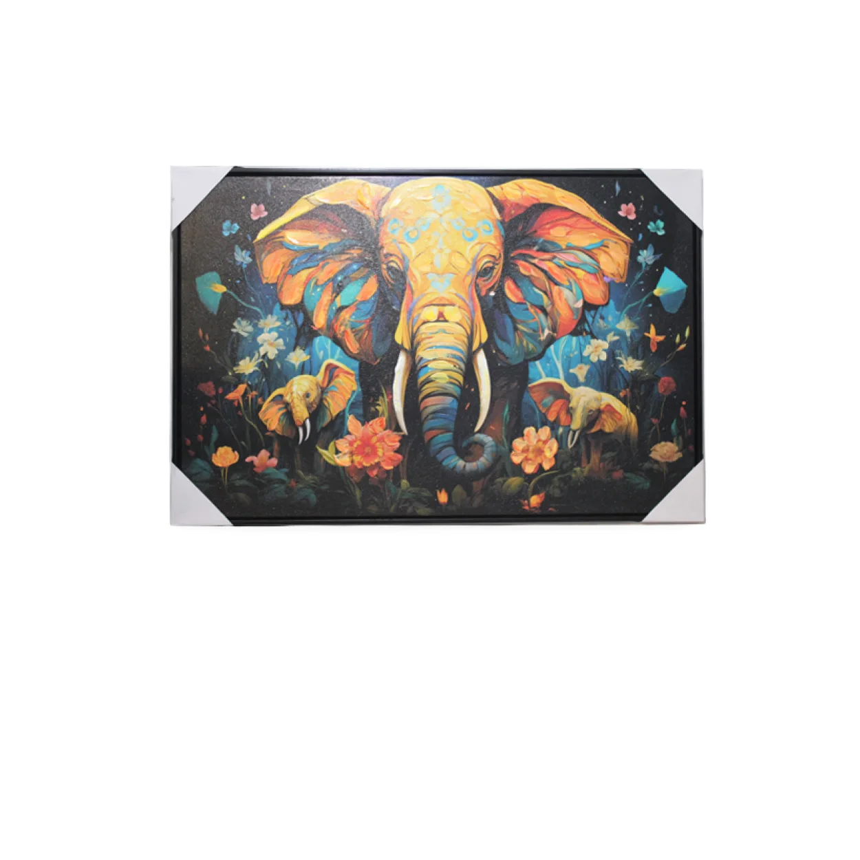 Yaşam alanlarınıza egzotik bir atmosfer ve sanatsal bir dokunuş katmak için tasarlanmış bu eşsiz yağlı boya kanvas tablo ile duvarlarınızı bir sanat galerisine dönüştürün. Canlı renk paletiyle hayat bulan bu büyüleyici eser, orman derinliklerinde neşeyle gezinen bir fil ailesini resmediyor. Ana filin görkemli duruşu ve etrafındaki minik filler, doğanın huzur veren döngüsünü ve aile bağlarının sıcaklığını gözler önüne seriyor. Turuncu, mavi ve sarının armonisiyle bezenmiş filler, rengarenk çiçeklerle dolu yemyeşil bir bitki örtüsünün içinde adeta dans ediyor.