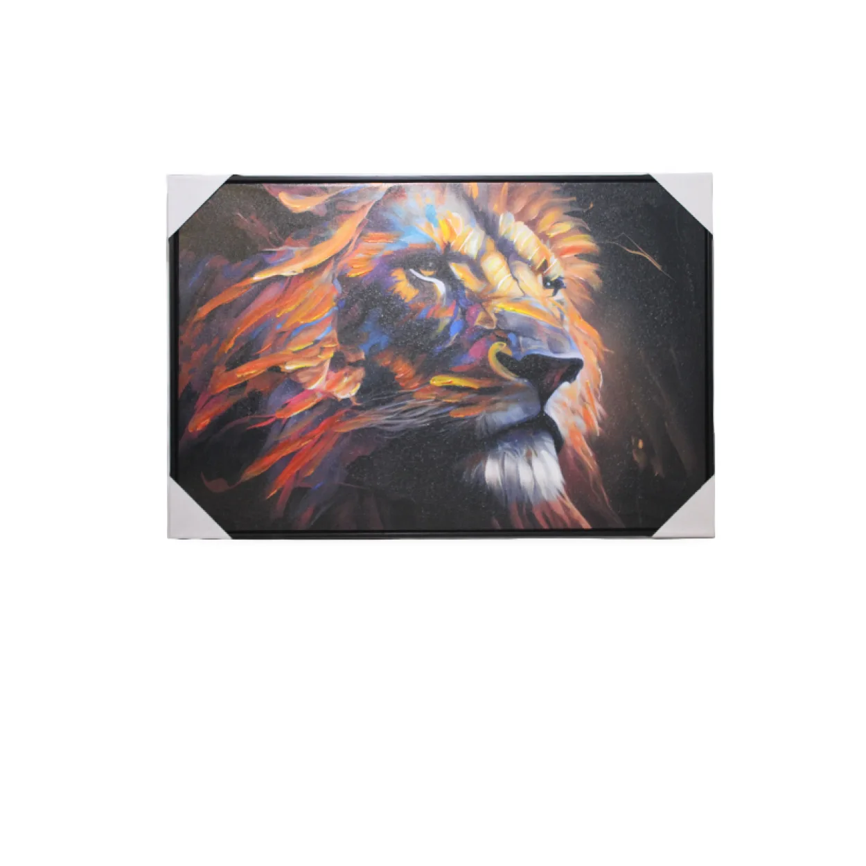 Modern Sanatın Vahşi Gücü: Renkli Aslan Yağlı Boya Duvar Panosu