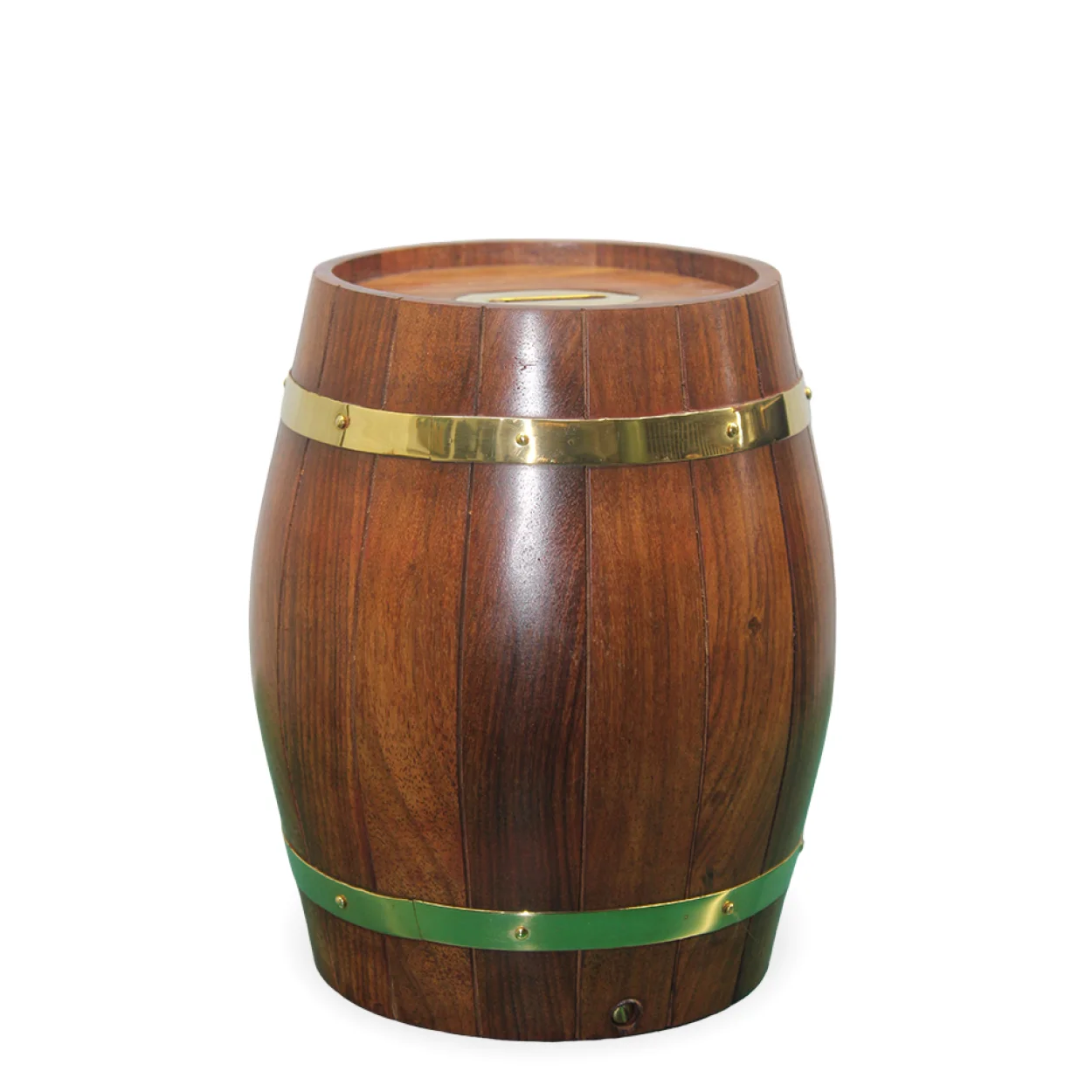 Dekoratif Ahşap Fıçı Şeklinde Pirinç Detaylı Kumbara | Nostaljik Tasarım Hediye