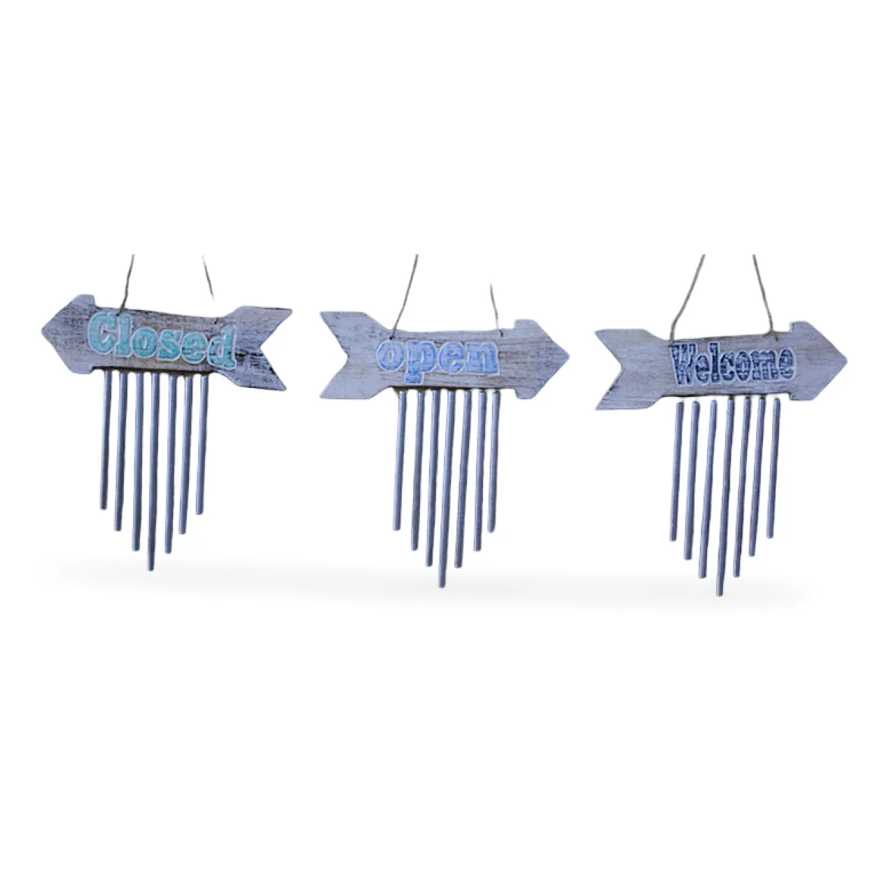 Bu dekoratif çan, benzersiz ok modeli tasarımıyla dikkat çeker. Ahşap eskitme görünümlü yüzeyi, otantik bir hava katarken, alt kısmından sarkan zarif metal çanlar hafif esintide bile hoş ve dingin melodiler yayar. Ev, ofis veya dükkan girişlerinde 'Closed', 'Open' veya 'Welcome' gibi mesaj seçenekleriyle pratik bir kullanım sunarken, misafirlerinizi gülümseten bir karşılama objesi olarak da işlev görür. Metal çanların sesi, bulunduğunuz ortama huzurlu ve rahatlatıcı bir ambiyans katar.