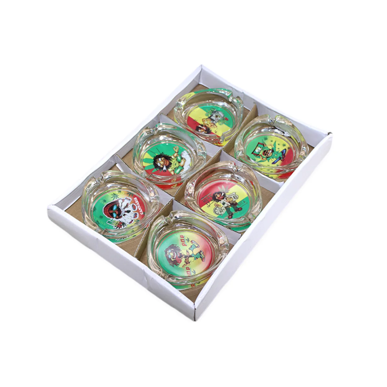 Dekoratif Rasta Reggae Motifli Özel Tasarım Şık Cam Küllük – Canlı Renkler