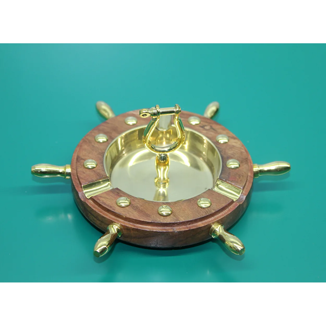 Deniz Temalı Pirinç Gemi Dümeni Küllük – Şık Ahşap & Metal Dekoratif Masaüstü Biblo