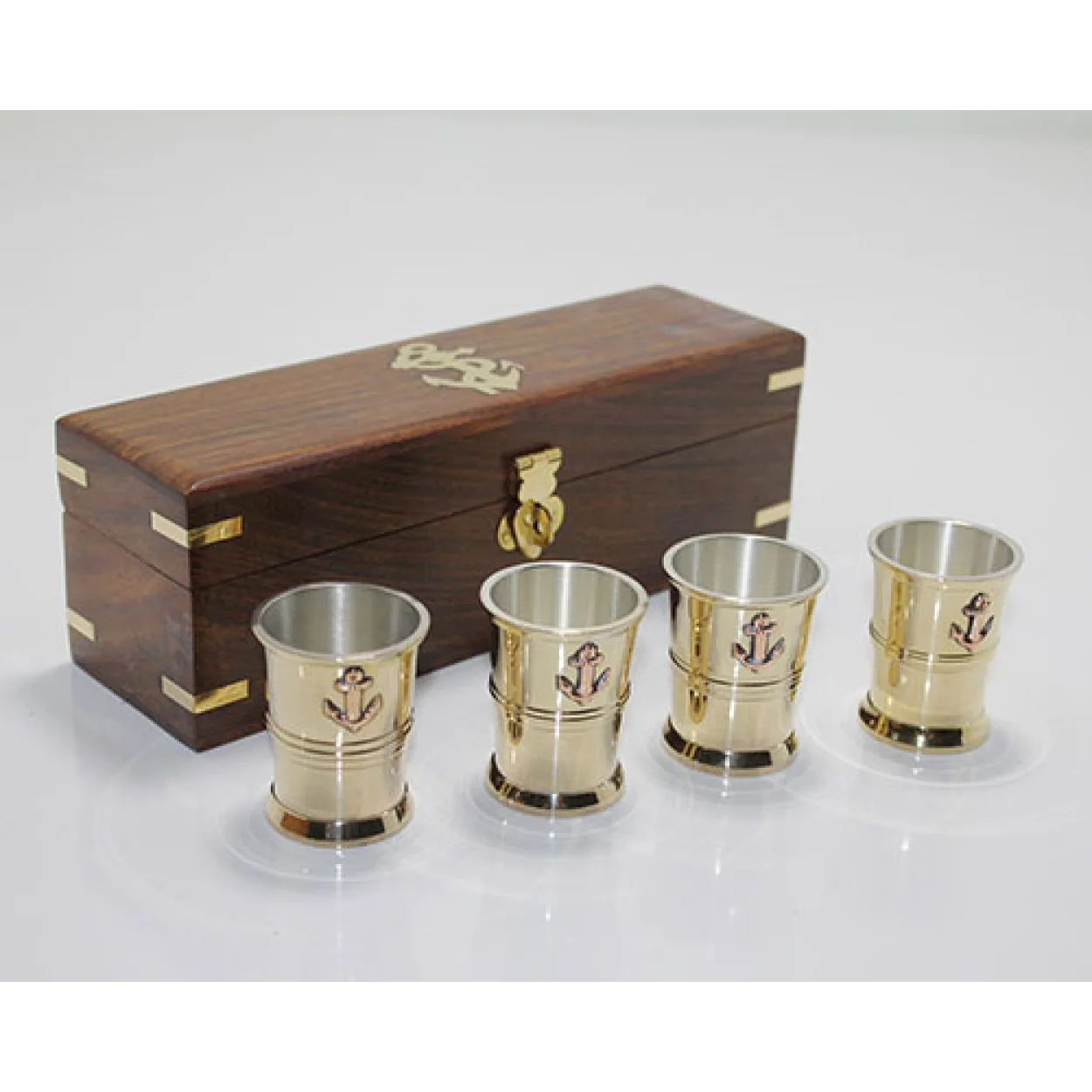 Denizci Temalı Ahşap Kutulu 4'lü Lüks Pirinç Shot Bardak Seti – Koleksiyonluk Hediye