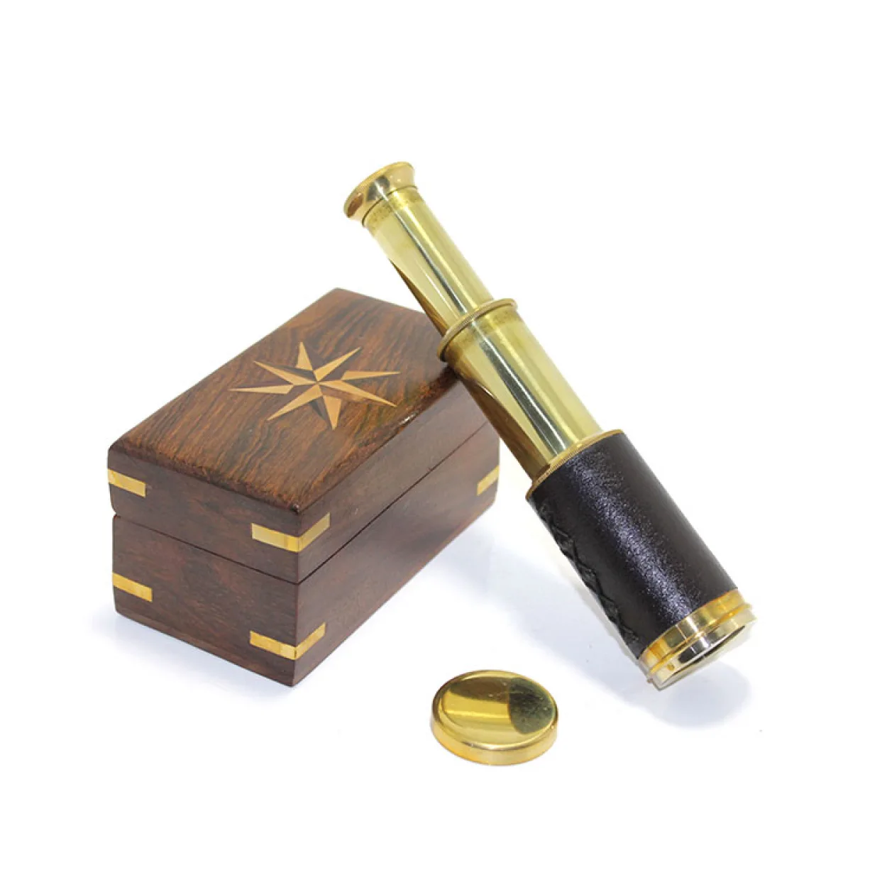 Denizci Temalı Ahşap Kutulu Pirinç El Dürbünü Teleskop: Antika Tasarım Hediyelik Obje