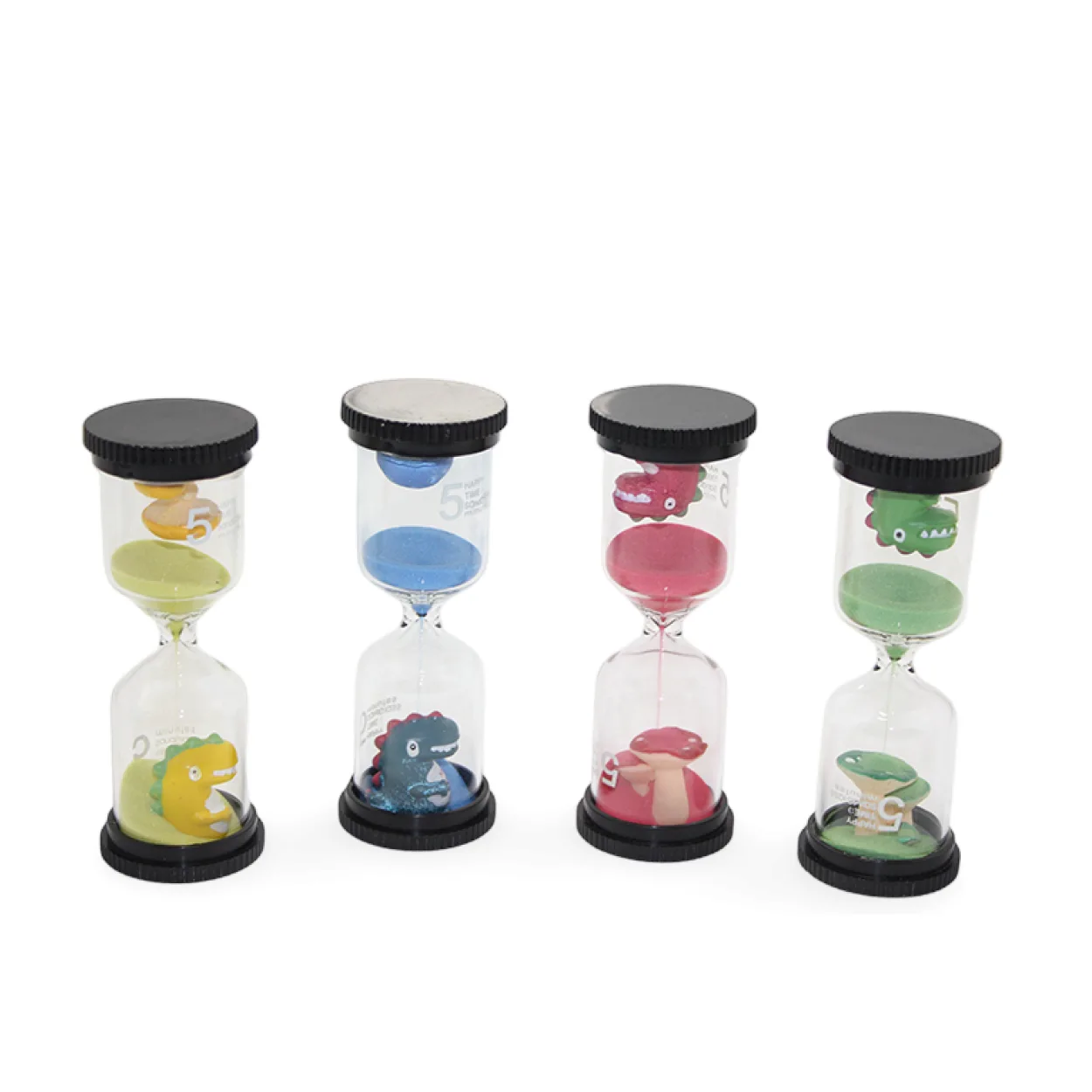- Sevimli ve Benzersiz Figürler: Her kum saatinin içinde yer alan şirin dinozorlar, mantarlar veya diğer dekoratif figürler, kumun akışını izlemeyi daha da keyifli hale getirir.
