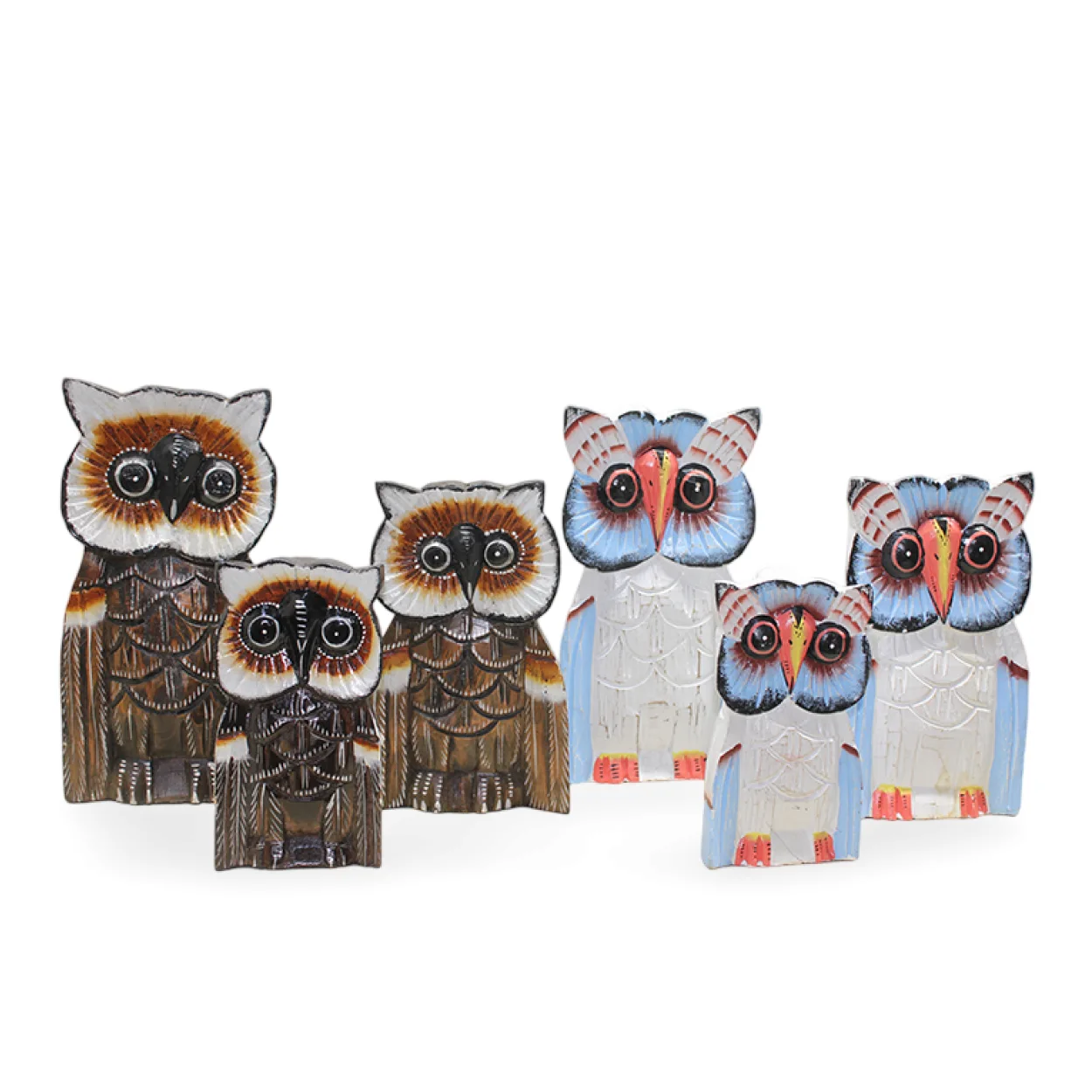 Bu özel baykuş setindeki her bir obje, yetenekli zanaatkarlar tarafından geleneksel tekniklerle şekillendirilmiştir. Doğal ahşabın sıcak tonları ve detaylı oymaları, her baykuşa kendine özgü bir ifade kazandırır. Kahverengi ve krem tonlarındaki renkleri, ahşabın dokusunu ve desenlerini ön plana çıkararak doğal bir estetik sunar. Göz alıcı detaylar ve pürüzsüz yüzeyler, bu bibloları sadece birer dekorasyon objesi olmaktan çıkarıp, adeta birer sanat eserine dönüştürür.