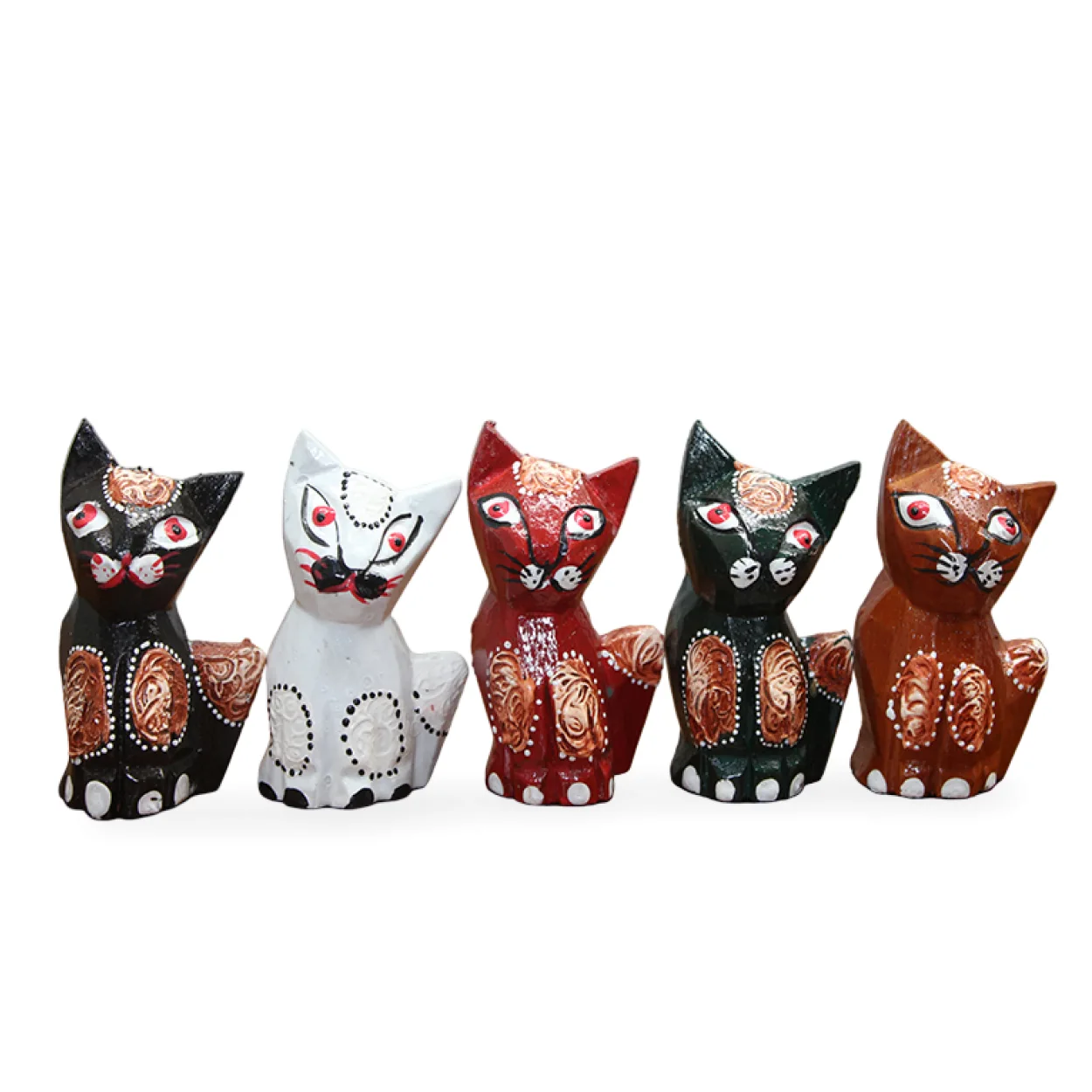 El Yapımı Ahşap Kedi Biblo – Dekoratif Ev Objeleri İçin Şık Renk Seçenekleri