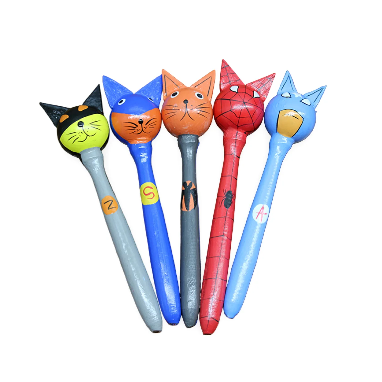 El Yapımı Ahşap Kedi Tasarımlı Dekoratif Marakas | Canlı Renk Seçenekleriyle Eşsiz Ev Aksesuarı