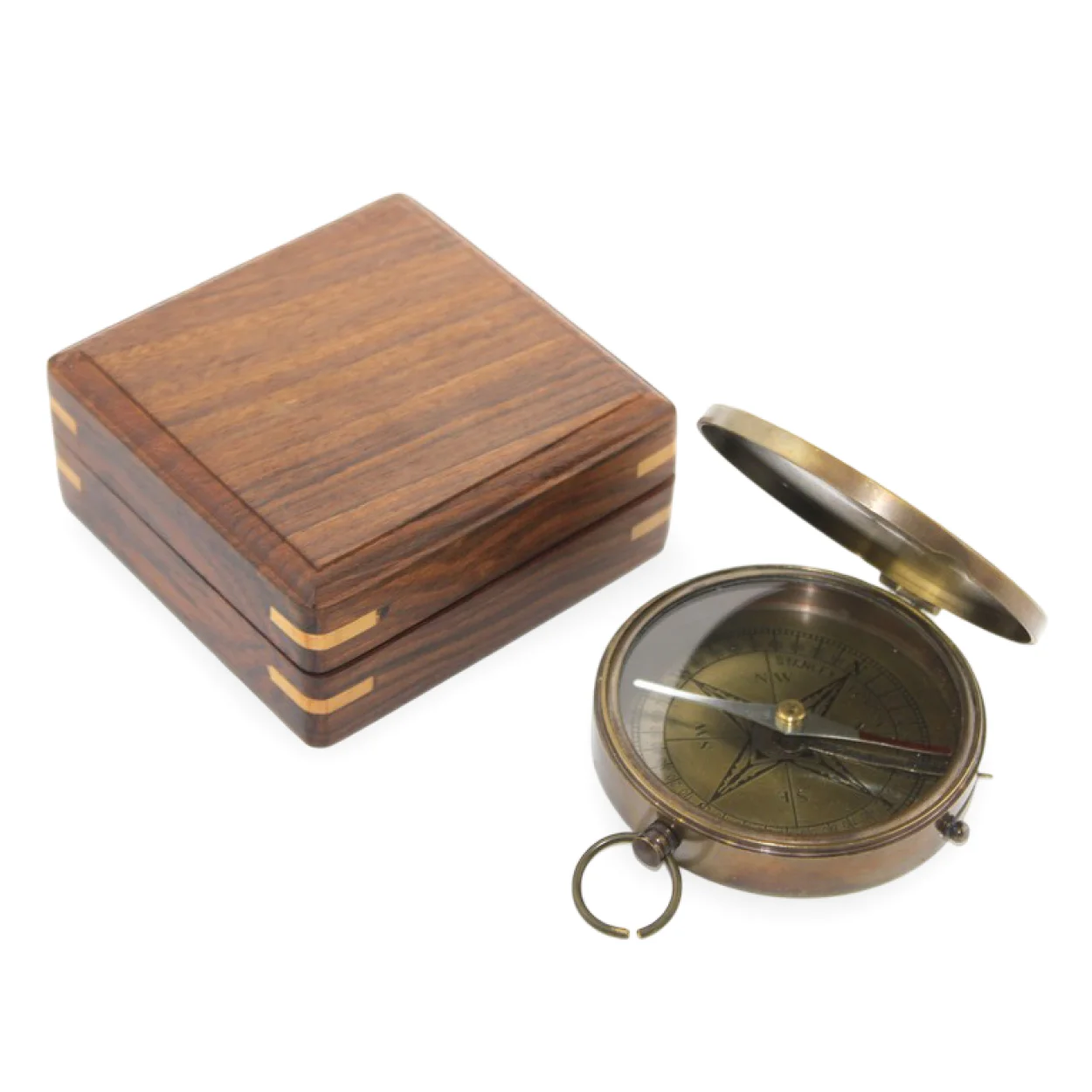 Vintage Ahşap Kutulu El Yapımı Pirinç Pusula: Zamanın Ötesinde Bir Yol Arkadaşı