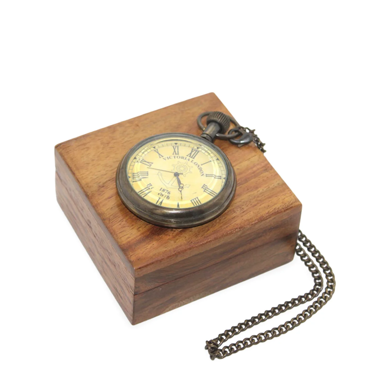 El Yapımı Ahşap Kutusunda Antik Pirinç Köstekli Cep Saati | Nostaljik Saat