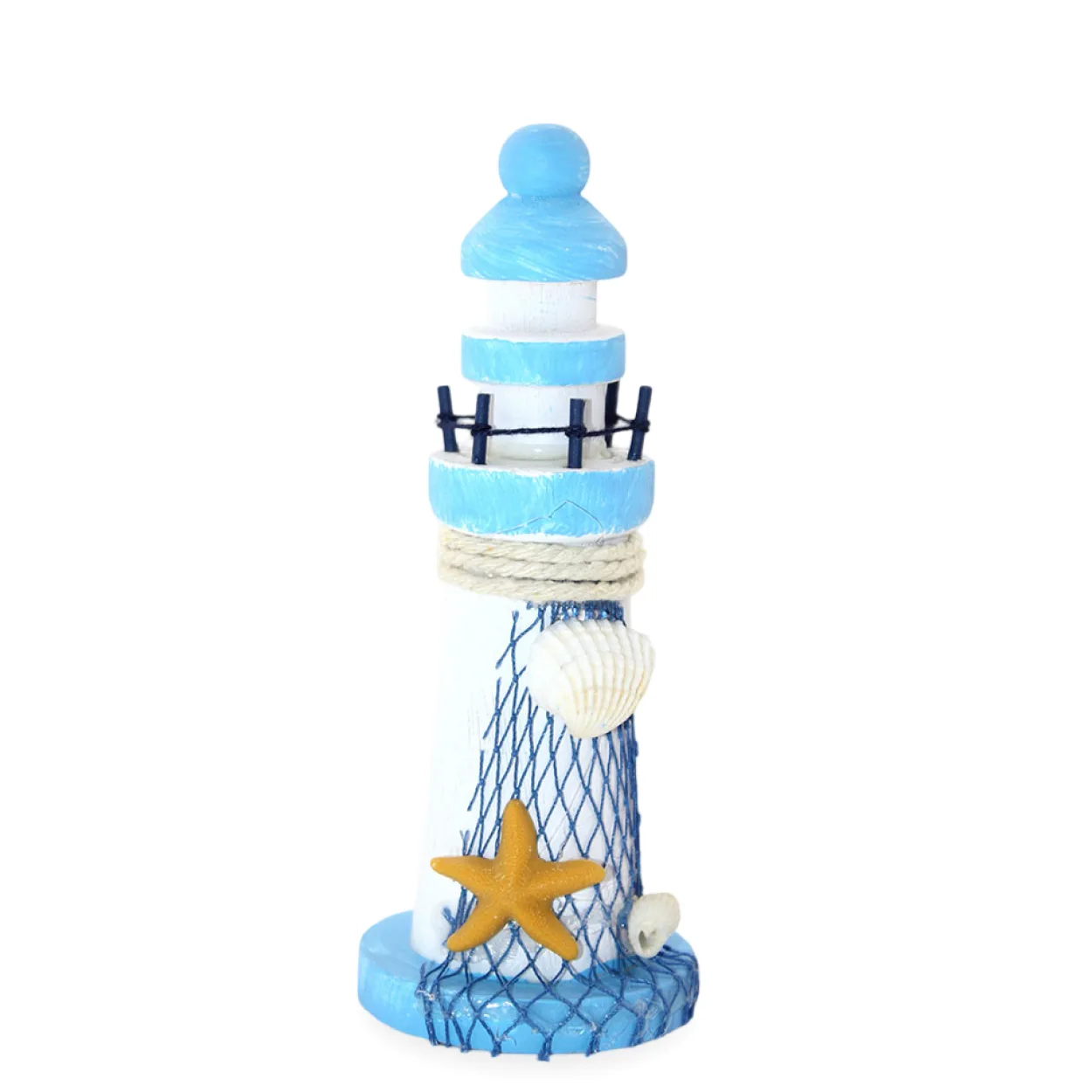 El Yapımı Ahşap Marin Deniz Feneri: Mavi Beyaz Temalı Dekoratif Obje Ev Aksesuarı