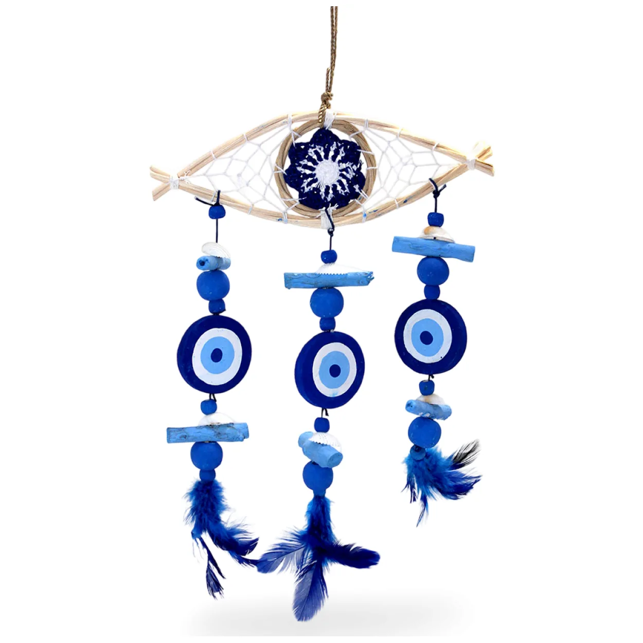Canlı Renkler ve Malzemeler: Canlı mavi ve beyaz tonların hakim olduğu tasarımda, ahşap boncuklar, doğal ahşap parçaları, şirin deniz kabukları ve alt kısımlarda sallanan yumuşak mavi tüylerle zenginleştirilmiştir. Her bir detay özenle seçilmiş ve elde işlenmiştir.