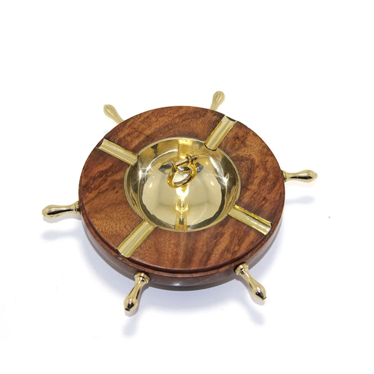 El Yapımı Ahşap ve Pirinç Gemi Dümeni Küllük | Deniz Temalı Dekoratif Obje