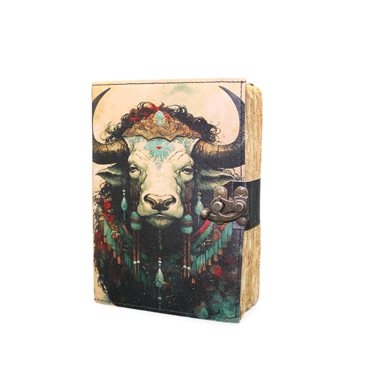 Defterin kapağında, mistik bir aura yayan, detaylı işlemelere ve süslemelere sahip kudretli bir boğa figürü yer alır. Mandala ve etnik motiflerle zenginleştirilmiş bu tasarım, her baktığınızda sizi farklı dünyalara taşıyacak.