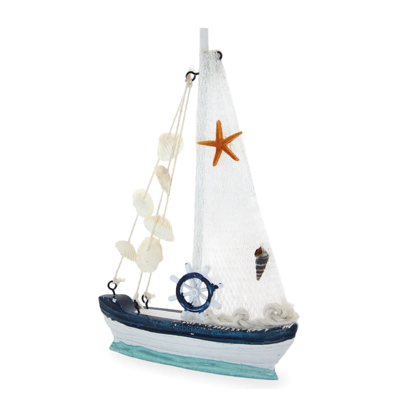 Evinize veya ofisinize deniz esintisi getirecek bu zarif marin ahşap gemi biblosu, her ortama huzurlu bir sahil atmosferi katıyor. Özenle tasarlanmış bu dekoratif figür, el yapımı hissi veren detaylarıyla dikkat çekiyor. Beyaz fileden yelkeni, denizyıldızı ve deniz kabuklarıyla süslenmiş yapısıyla, okyanusun sakinliğini yaşam alanlarınıza taşıyacak.