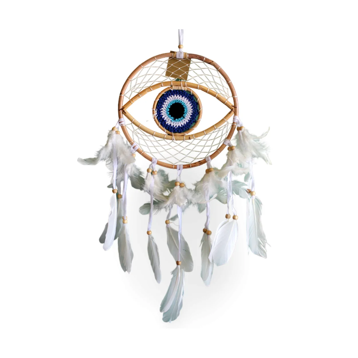 Uykularınızı koruyan, kötü enerjileri uzaklaştıran ve evinize huzur getiren bu özel Nazar Boncuğu Desenli Rüya Kapanı ile tanışın. Geleneksel düş kapanı motifini modern ve şık bir yorumla birleştiren bu parça, her mekana mistik bir hava katacak.