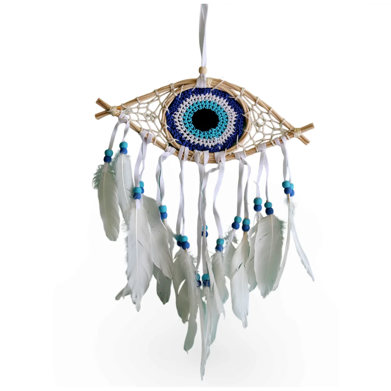 El Yapımı Nazar Boncuğu Göz Tasarımlı Otantik Rüya Kapanı Düş Kapanı Duvar Dekoru