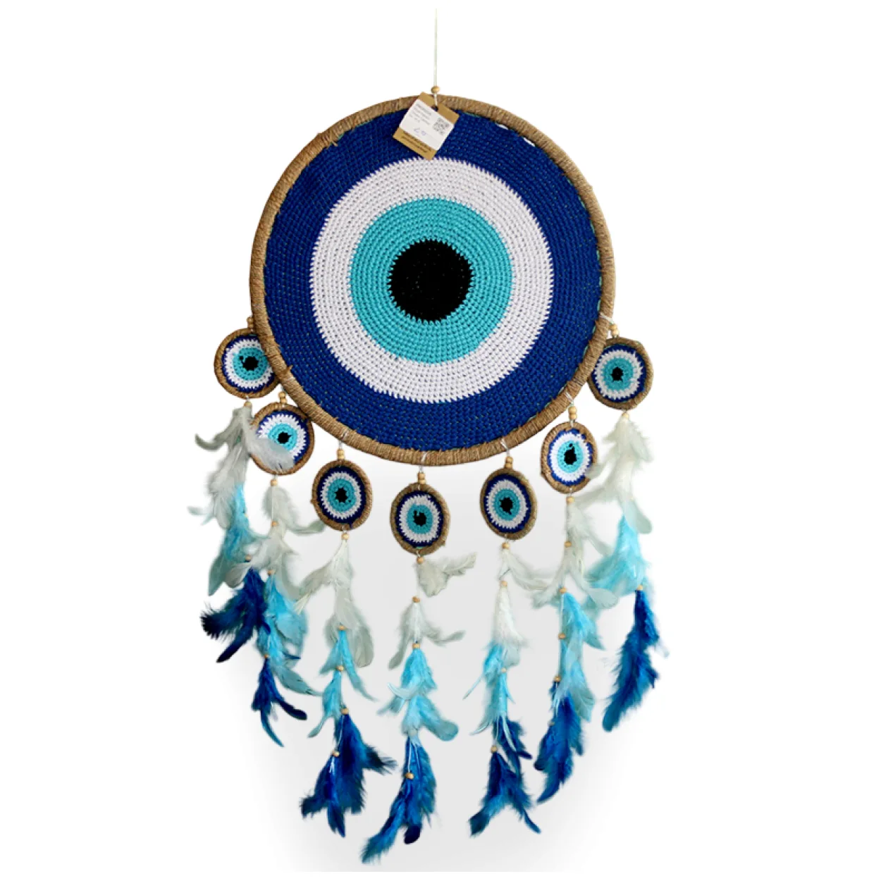 Geleneksel inançları modern estetikle birleştiren bu büyüleyici el yapımı Dream Catcher, evinize huzur ve pozitif enerji katmak için tasarlandı. Kötü ruhları ve olumsuz enerjileri uzaklaştırdığına inanılan güçlü nazar boncuğu motifleriyle süslenmiş bu düş kapanı, sadece bir dekorasyon objesi değil, aynı zamanda anlamlı bir tılsımdır.