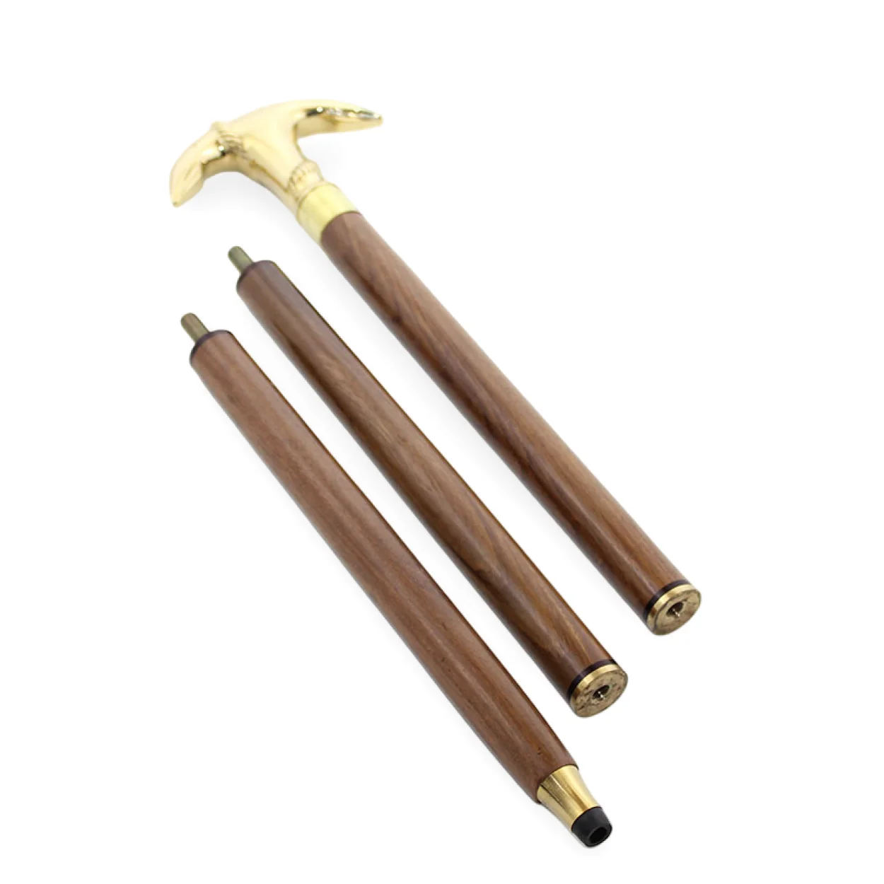 - Yüksek Kaliteli Ahşap Gövde: Bastonun gövdesi, sağlam ve damarlı yapısıyla öne çıkan kaliteli ahşaptan üretilmiştir. Ahşabın doğal sıcaklığı ve dokusu, pirinç sapın soğuk metal parlaklığıyla mükemmel bir kontrast oluşturur. Ahşap gövde, hafif yapısına rağmen oldukça dayanıklıdır ve günlük kullanıma uygun sağlamlık sunar. Ürünün demonte edilebilir yapısı, taşınabilirliğini artırarak seyahatlerde veya depolamada büyük kolaylık sağlar. Her bir parça özenle işlenmiş olup, kusursuz bir uyumla birleşerek tek parça bir baston görünümü sunar.