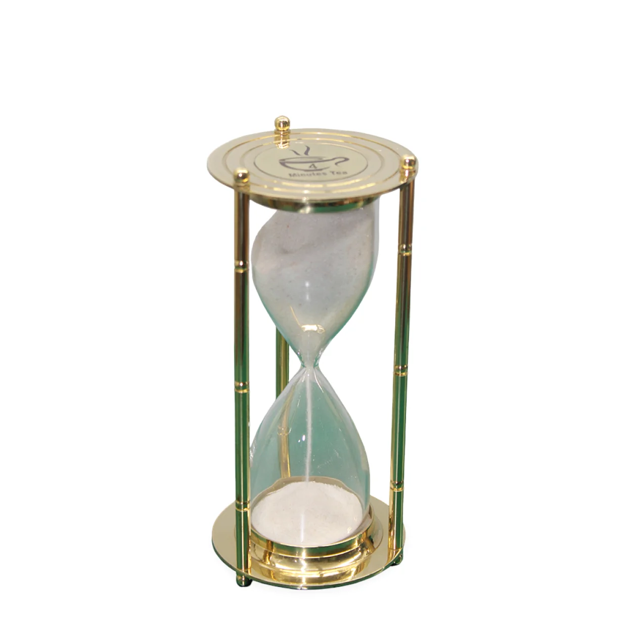 El Yapımı Pirinç Çerçeveli 4 Dakikalık Çay Demleme Kum Saati – Masaüstü Dekoratif Zamanlayıcı