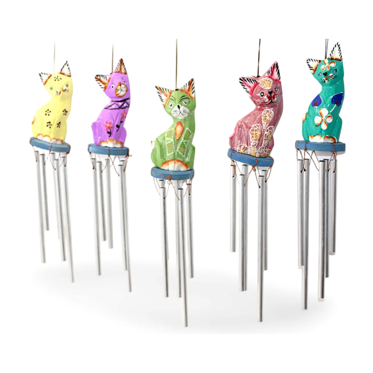 Evinize veya bahçenize neşe katacak, el yapımı ahşap kedi figürlü metal rüzgar çanımızla tanışın. Her biri özenle işlenmiş canlı renkteki bu dekoratif figür, nazik rüzgarlarda huzur veren melodilerle ruhunuzu okşayacak.