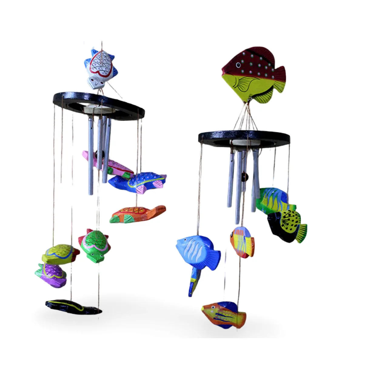 Evinize, bahçenize veya balkonunuza okyanus esintisi ve canlı bir dokunuş katmak için tasarlanmış bu el yapımı rüzgar çanı, renkli deniz canlıları figürleriyle dikkat çekiyor. Her biri özenle boyanmış balık ve kaplumbağa bibloları, hafif bir rüzgarda ahenkli sesler çıkararak huzurlu bir atmosfer yaratır.