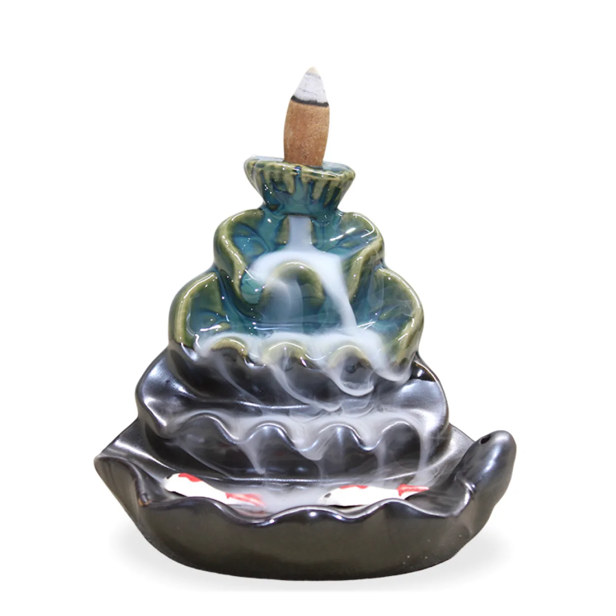 Evinize veya ofisinize huzur ve dinginlik katacak bu el yapımı seramik geri akış şelale tütsülük ile benzersiz bir atmosfer yaratın. Görseldeki gibi, özel tasarımı sayesinde yanan tütsünün dumanı adeta bir şelale gibi aşağı doğru akarak büyüleyici bir görsel şölen sunar. Bu dekoratif obje, bulunduğu her alana estetik ve mistik bir dokunuş katar.