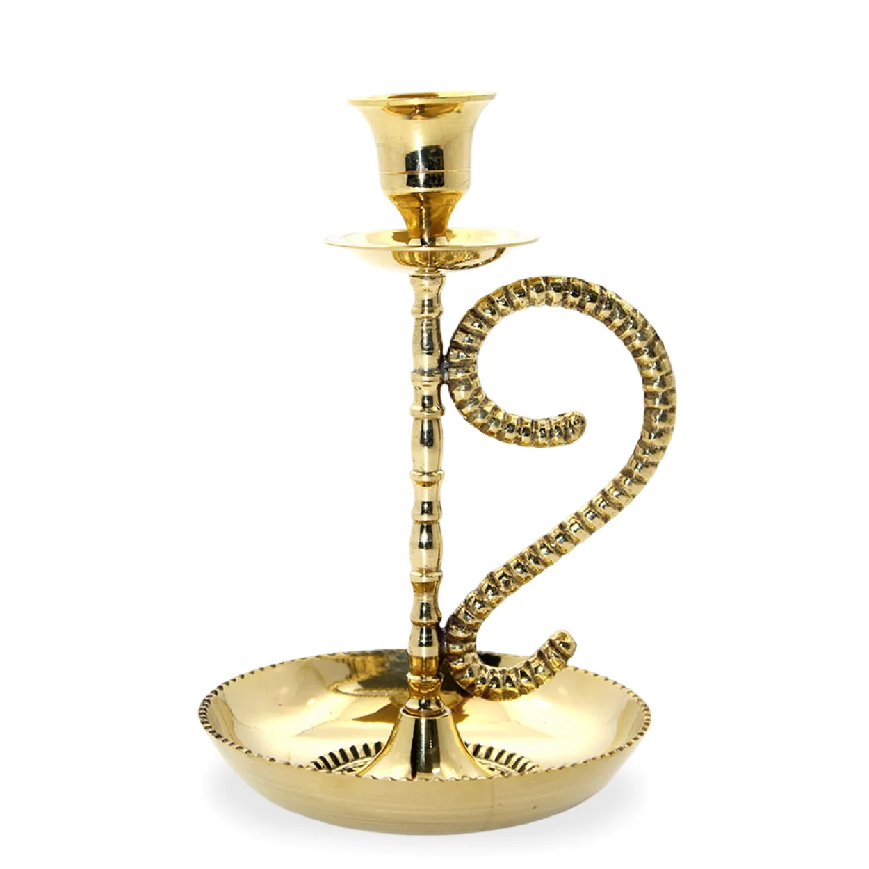El Yapımı Tekli Pirinç Şamdan: Sanatsal Tasarımlı Klasik ve Modern Ev Dekoru