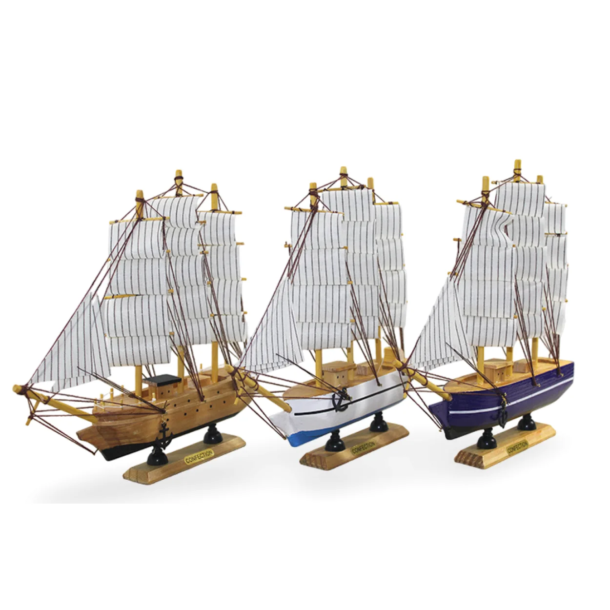 Bu üçlü ahşap yelkenli gemi biblo seti, sadece bir dekorasyon öğesi değil, aynı zamanda denizcilik tarihine ve ruhuna duyulan hayranlığın bir yansımasıdır. Sevdikleriniz için unutulmaz ve anlamlı bir hediye alternatifi olarak da düşünebilirsiniz.