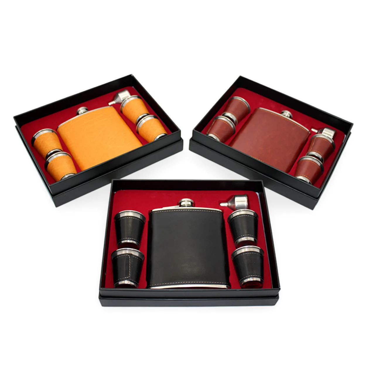 Erkeklere Özel Şık Paslanmaz Çelik 18 Oz Derili Matara ve 4 Shot Bardaklı Seyahat Seti