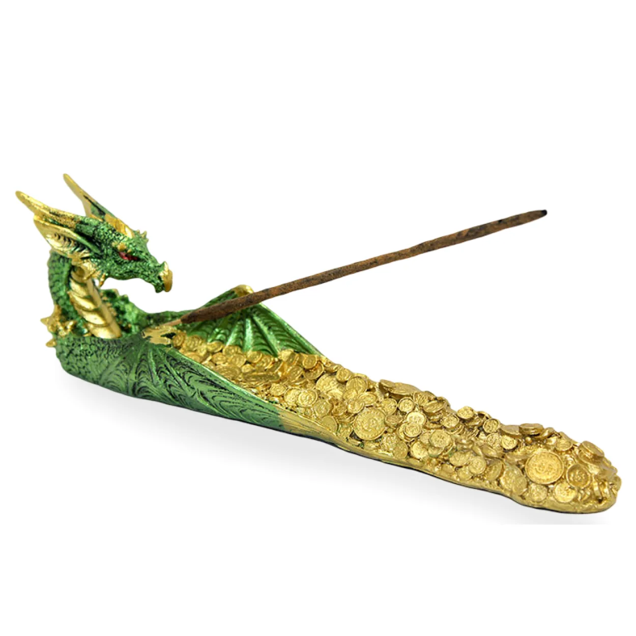 Fonksiyonel Kullanım: Uzun bir tütsü çubuğunu güvenle yerleştirebileceğiniz özel bir yuvaya sahiptir. Yanan tütsünün külleri, ejderhanın koruduğu altın para yatağının üzerine düşerek etrafın kirlenmesini önler.