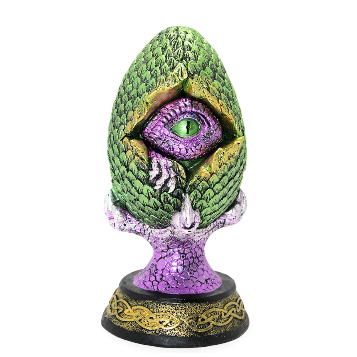 Fantastik Yeşil Mor LED Işıklı Ejderha Gözlü Yumurta Biblosu Pençeli Dekoratif Figür