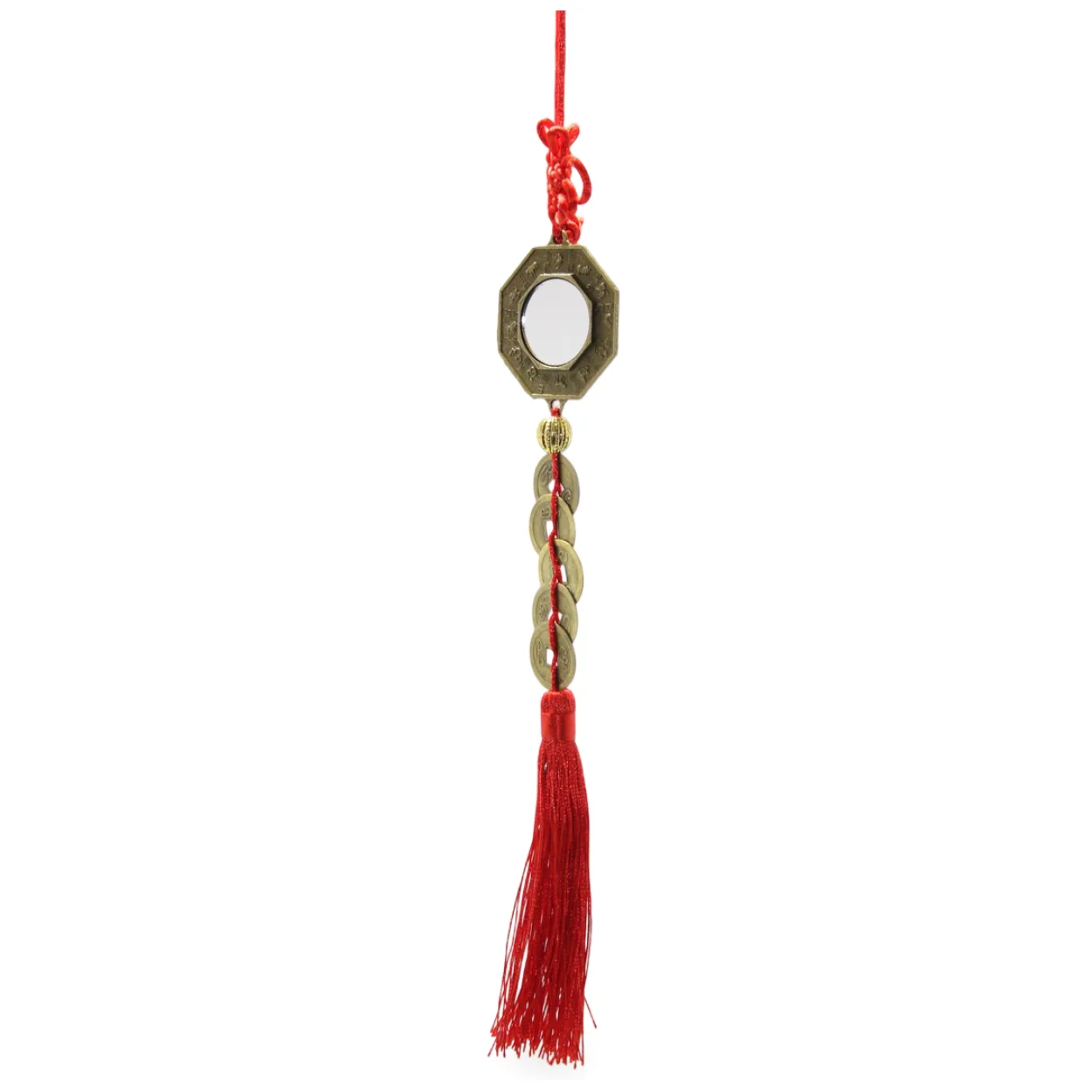 Feng Shui Bagua Ayna Şans Bereket Para Sikke Askısı | Kırmızı Püsküllü Uğur Tılsımı Ev Ofis Dekoru