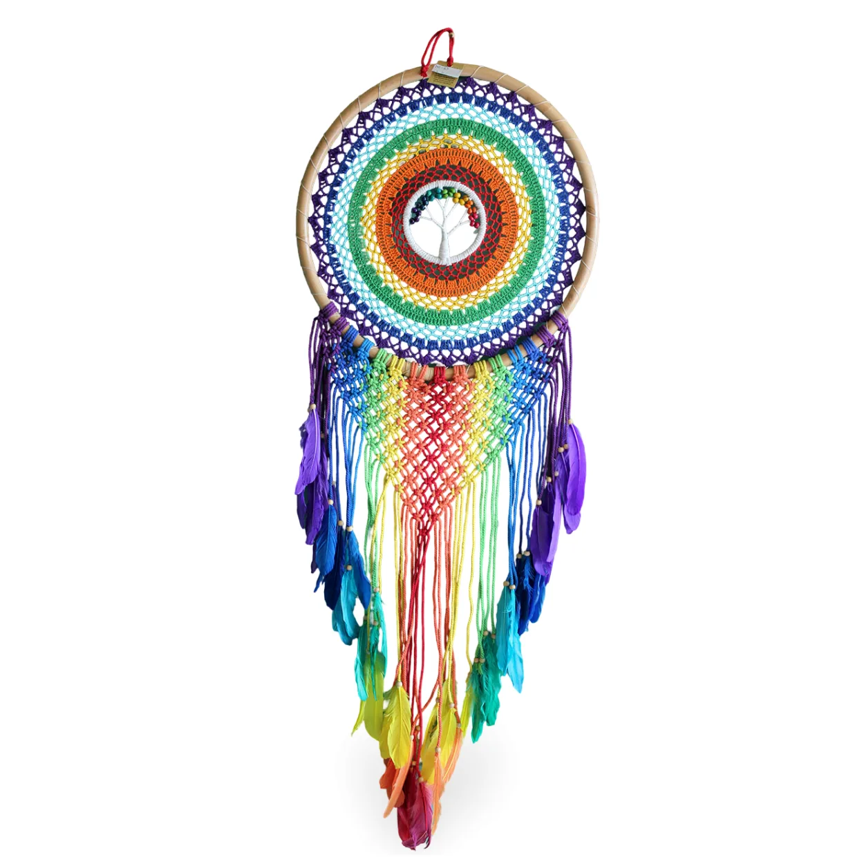 Gökkuşağı Renklerinde El Yapımı Hayat Ağacı Temalı Makrome Düş Kapanı Rüya Kapanı