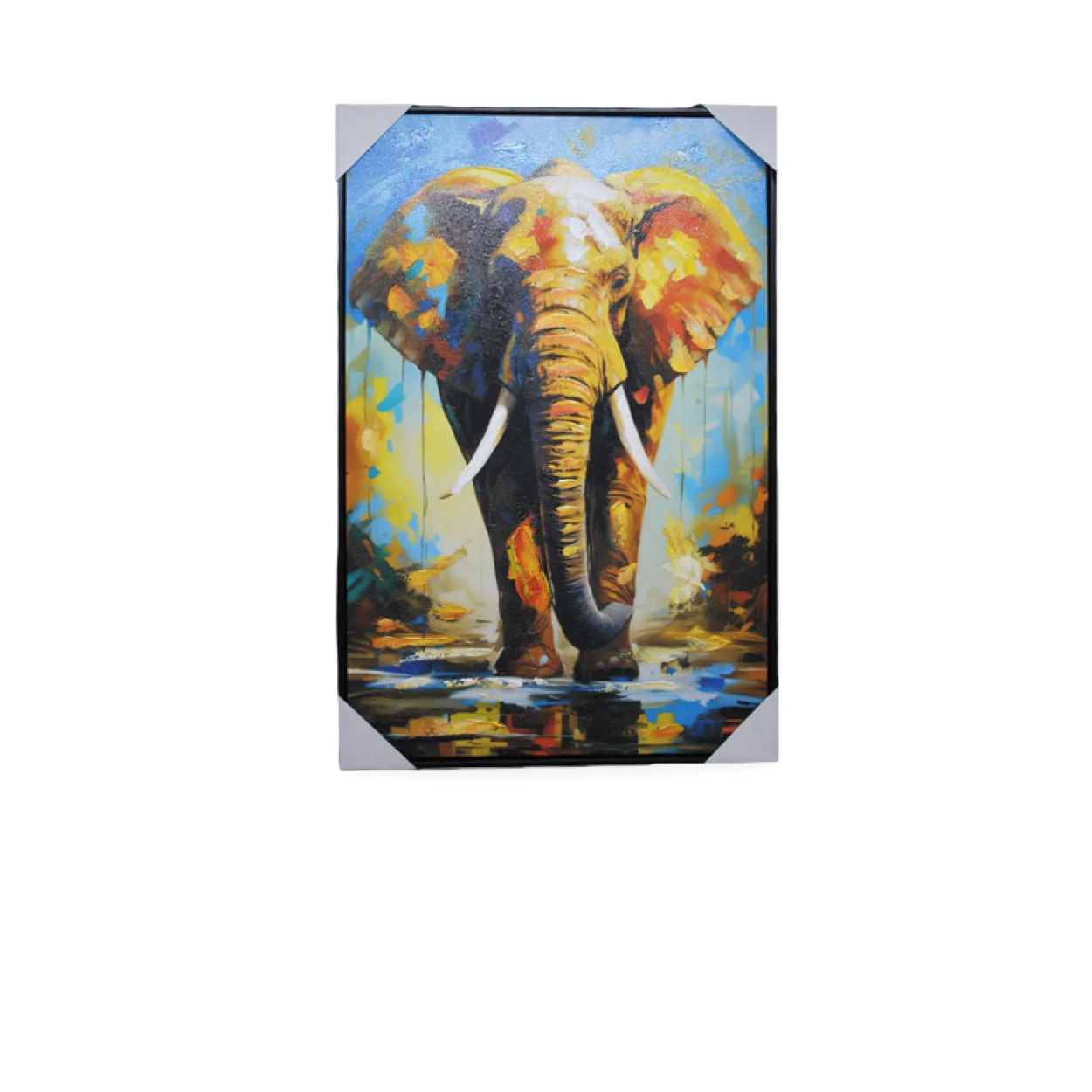 Evinizin veya ofisinizin atmosferini dönüştürecek, sanat ve zarafeti bir araya getiren bu özel yağlı boya duvar panosu ile tanışın. Canlı renk paleti ve etkileyici fil figürüyle duvarlarınıza hayat katacak bu eser, modern ve otantik dekorasyonları kusursuzca tamamlar. El yapımı detaylarıyla her bakışta farklı bir derinlik sunan bu tablo, su birikintisinde yürüyen görkemli bir filin yansımasını yakalayarak mekanınıza huzurlu ve asil bir dokunuş getirir.