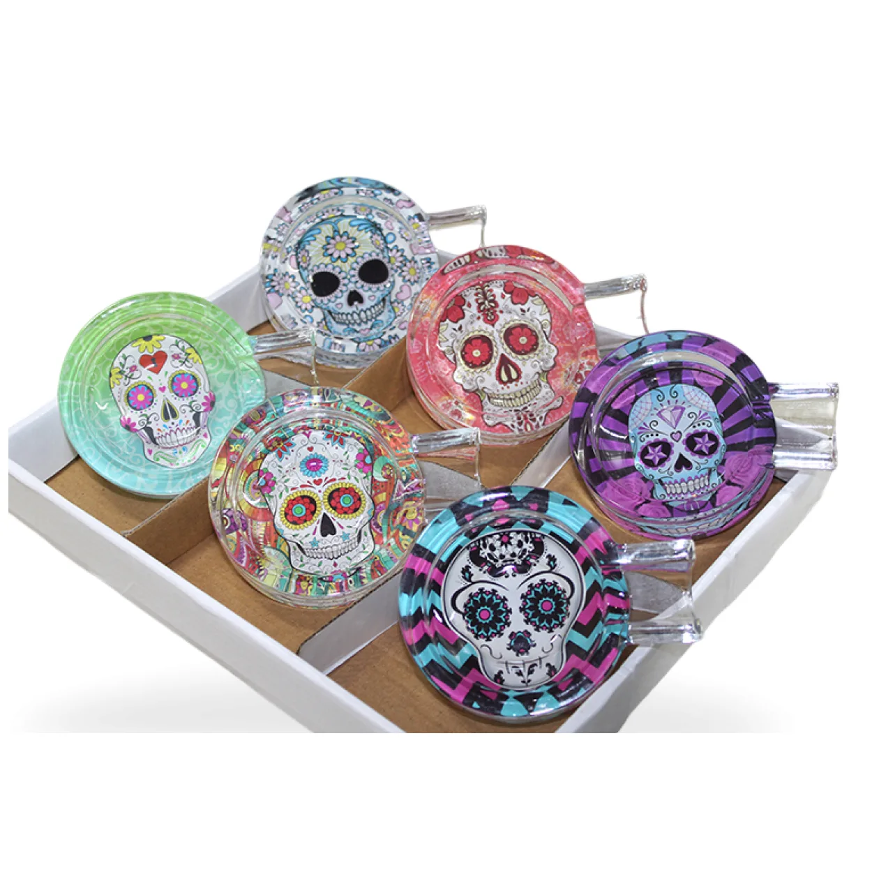 Göz Alıcı Şeker Kurukafa Desenli Dekoratif Cam Küllük | El Yapımı Görünümlü ve Canlı Renkler