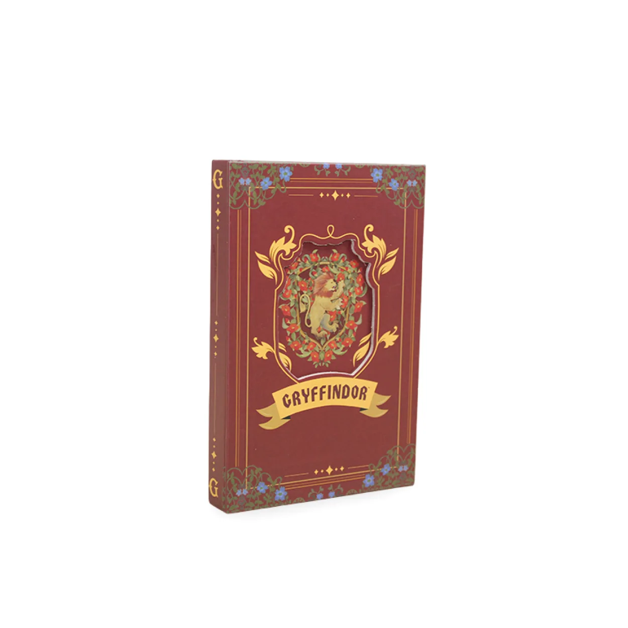 Koyu kırmızı tonlarındaki kapağında, Gryffindor'un ikonik aslan arması, zarif çiçek ve sarmaşık desenleriyle süslenmiş bir çerçeve içinde gururla yer alıyor. Altın yaldız detaylar, deftere lüks ve otantik bir görünüm kazandırırken, 'Gryffindor' yazısı bina ruhunu tam anlamıyla yansıtıyor. Defterin sırtında yer alan zarif 'G' harfi, her bir detayın özenle düşünüldüğünün bir göstergesi.