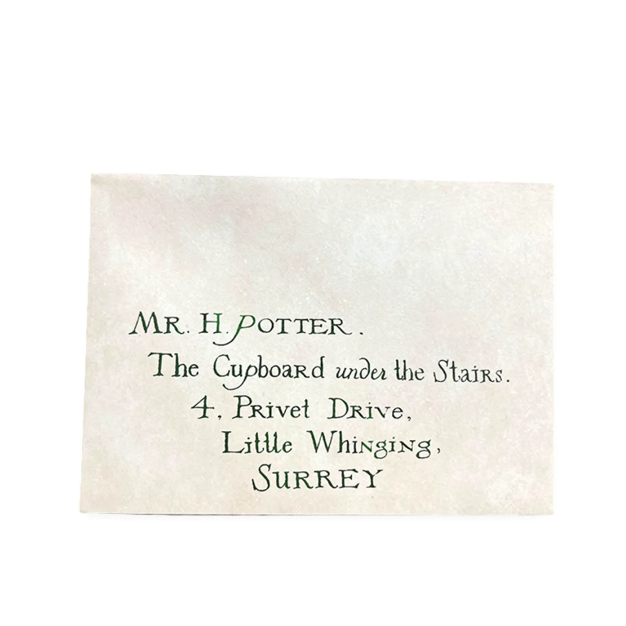 Otantik Tasarım: Mr. H. Potter'a yazılan, "The Cupboard under the Stairs, 4, Privet Drive, Little Whinging, Surrey" adresini içeren, filmdeki orijinal mektubun birebir kopyasıdır.